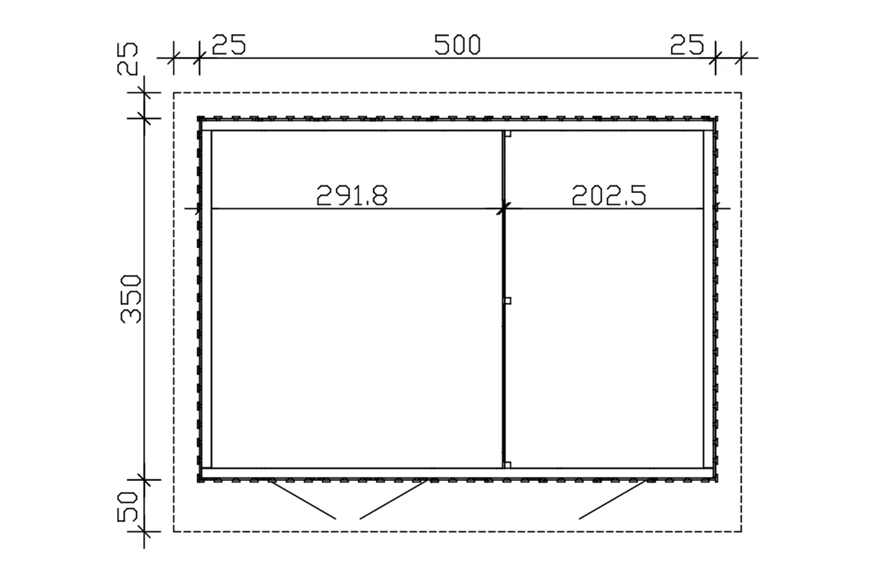 Hoone konstruktsioon 32x96mm ning 19mm peensaetud pinnaga laudis põrandatalad 45x145mm