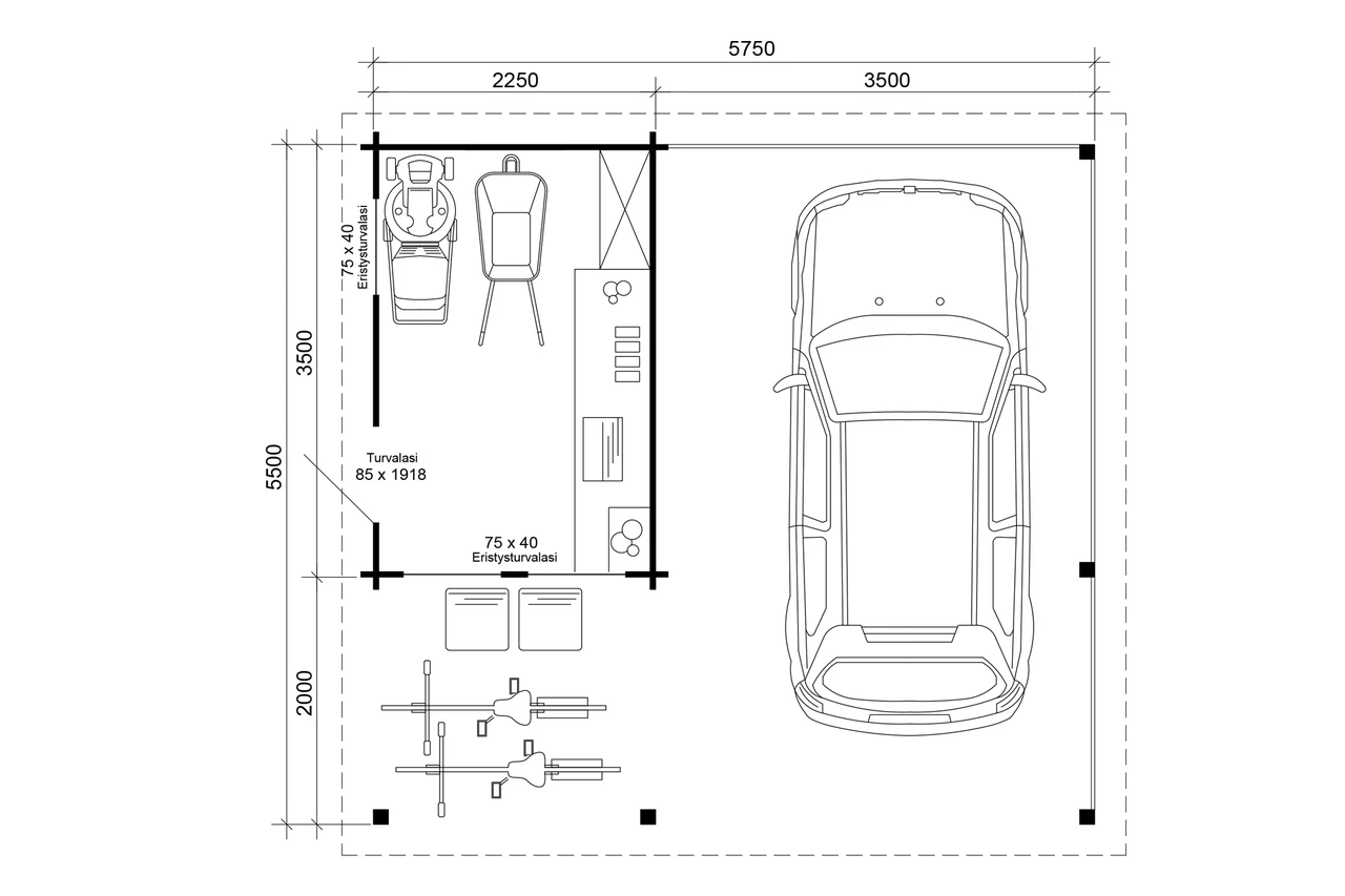 Katuse üleulatus külgedel/taga